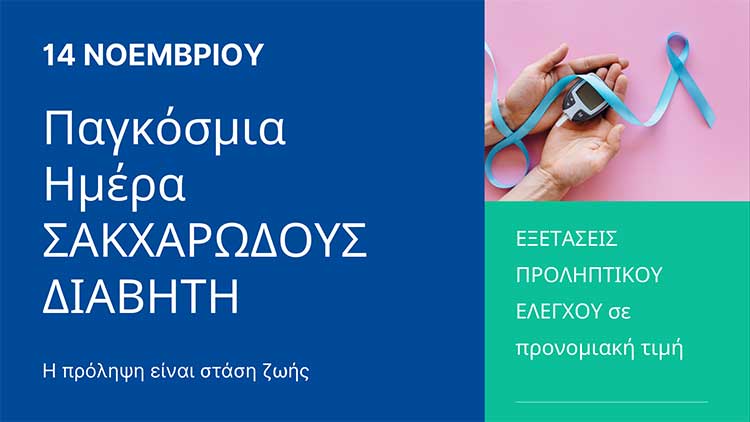 Με αφορμή την Παγκόσμια Ημέρα Σακχαρώδους Διαβήτη η Γενική Κλινική Πειραιώς Ιπποκράτης Α.Ε. προσφέρει εξετάσεις προληπτικού ελέγχου σε προνομιακή τιμή.