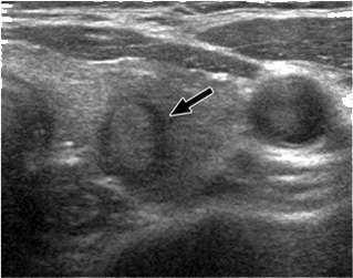 Εικόνα Γ (Συμπαγής όζος στον αριστερό λοβό του θυρεοειδούς σε υπερηχογράφημα)